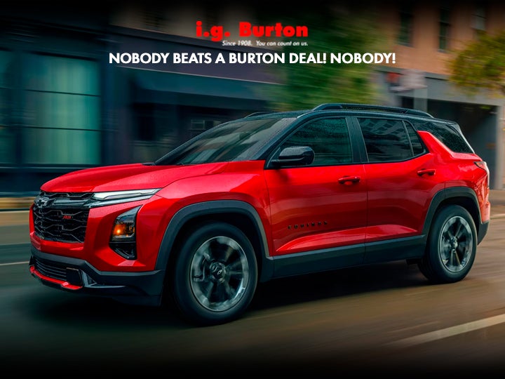1. Final discount includes the i.g. Burton Discount that ALL customers qualify for. Prices INCLUDE freight and delivery charges. Tax, title, license, and dealer processing fee of $799 (Delaware) or $800 (Maryland) extra. Not available with lease and some other offers. Offer applies to stock number E26-1078 while supplies last. Not all customers will qualify for all available offers. Residential restrictions apply. Must take new retail delivery by 04/30/2026. 2. Deferred monthly payments for 90 days. Finance charges accrue from date of financing. Must finance with GM Financial. Down payment required at signing, if applicable. Offer not available in PA. Some customers may not qualify. Not available with lease and some other offers. 1.9% APR for 36 months for well-qualified buyers when financed w/GM Financial. Monthly payment is $28.6 for every $1000 you finance. Average example down payment is 10.0%. Not available with leases and some other offers. Must take new retail delivery by 04/30/2026.